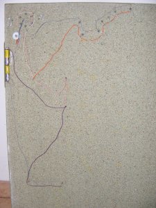 Az MDF lapot, amire építkeztem két csavar tartja a falon, mögötte – a drótozás miatt – kisebb rés van. Gondolhatjátok, milyen boldogok voltunk, amikor elleptek minket a hangyák – jó, ez mással is előfordul, de – megtalálták A rést, ami a konyhapult hátánál található, és azon keresztül kezdték el a mosogató mellől elhordani az ételmaradékokat. Leszereltük hát a falról a játékot – egyszer, kétszer, százszor. Jól nézett ki, ahogy a falon kanyargó, tömött sorokban menetelnek …, de menniük kellett. Állatbarát vagyok, de a lakásban csak a kisméretű pókokat tűröm meg, nem hiába vannak nyulain és nem valami egyéb szobarágcsálónk. Na jó, a halakkal még ellennék. (Abba bele sem merek gondolni, mi lesz, ha a srácok kicsit nagyobbak lesznek, és jönnek az ötleteikkel…)