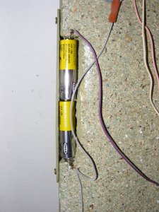 Az elemeket egy rossz gyerekjáték elemtartójából kiszedett rugó és lemez közé vannak szorítva.