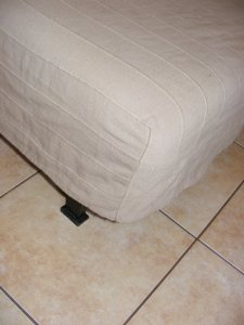 Egy évvel ezelőtt – te jó ég, már ilyen régen volt? – az Angyalok Anyának kanapét hoztak. Két szempontunk volt a választás során: 1. legyen pénztárcakímélő, 2. a gyerekek nyugodtan nyúzhassák. (Lássuk be, ez a kettő szorosan összefügg:D) Az IKEA EXARBY nevű darabját néztük ki. Láttuk használatban egy 4 gyerekes családban, gondoltuk, ha nálunk bírja, nálunk is fogja. Egy kis bibivel van csak vele: FEHÉR…. és nem lehet hozzá huzatot kapni, amit időnként bedobhatna az ember a mosógépbe. Választottam hát mellé egy ágytakarót, ami FABRINA névre hallgat, bézs színű és 240×240 cm. Ezt persze a gyerekek miatt félóránként igazítani kellett… Ráadásnak bedobtam a kosárba két KRÅKRIS párnát, (Mondanom sem kell, hogy soha nincsenek a helyükön… 😀 )